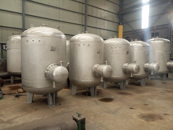1、容積式換熱器熱媒溫降大。汽水換熱時(shí),凝結(jié)水出水溫度約50℃,回水管上下需設(shè)疏水器,給使用維修帶來(lái)方便,水-水換熱時(shí),熱溫降為同型換熱器的2~2.5倍,120~150℃的高溫?zé)崴畵Q熱后可降至70~75℃。